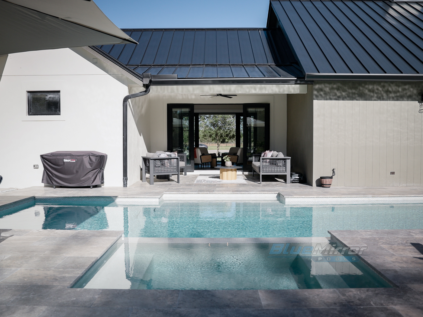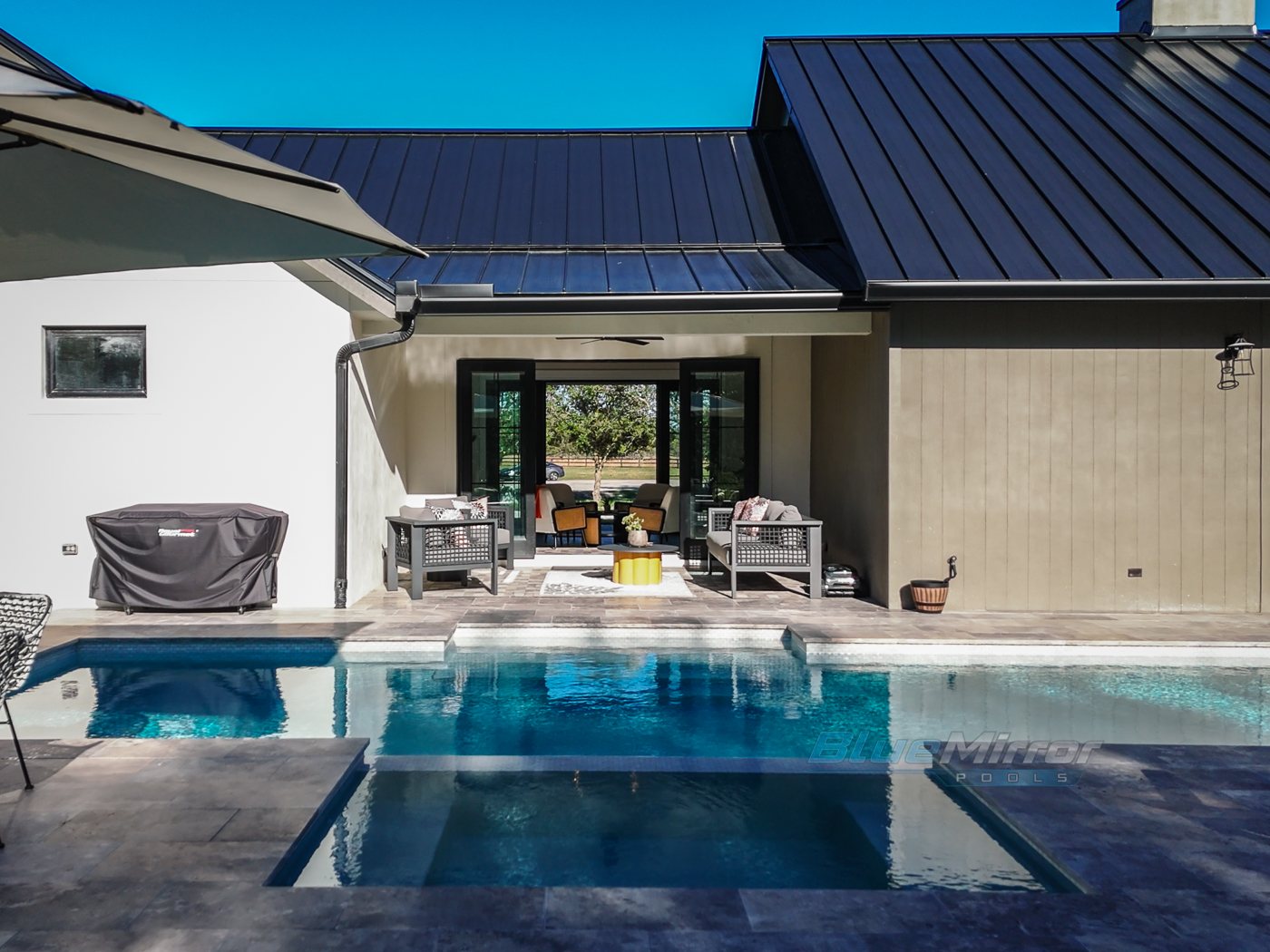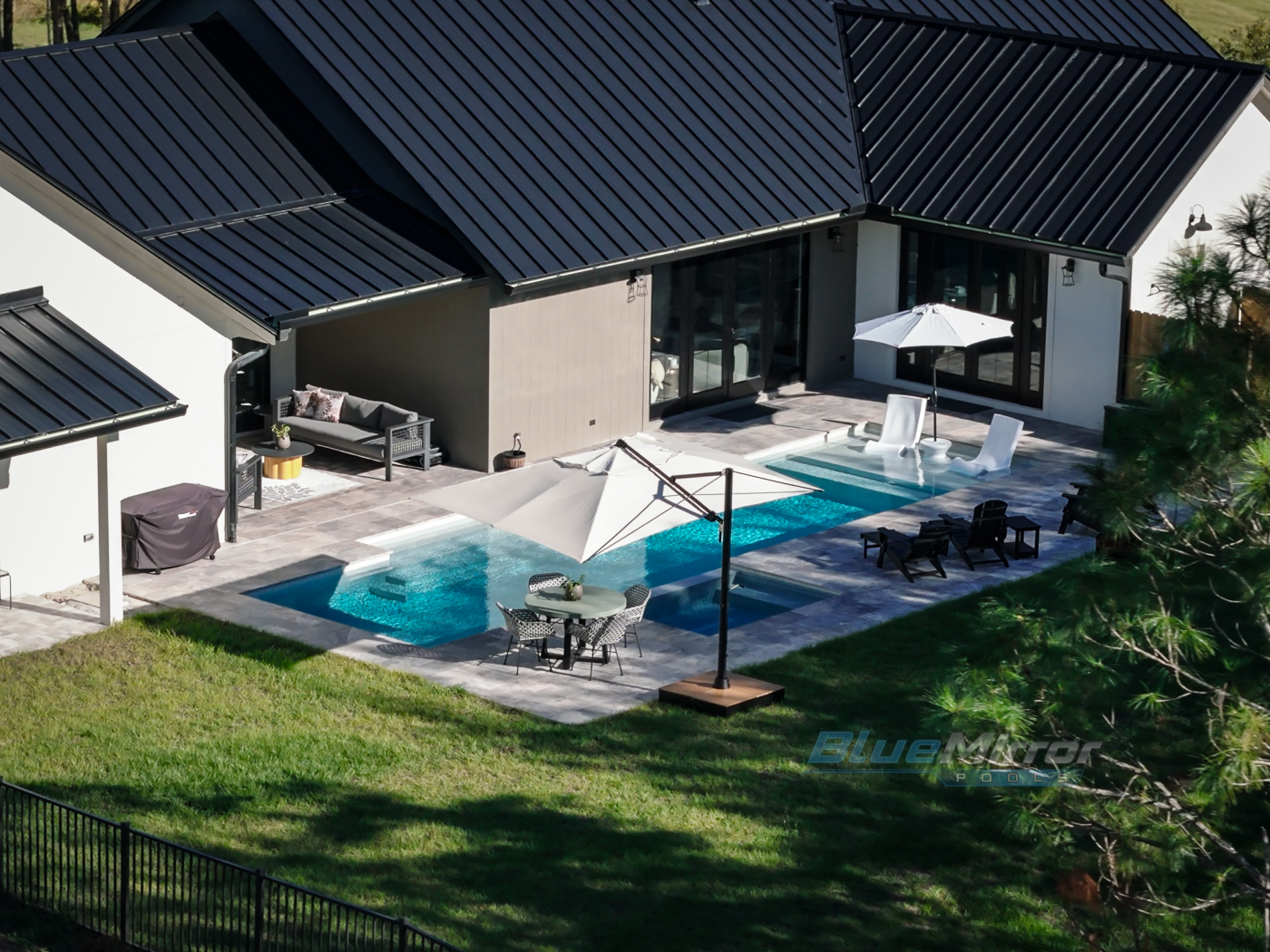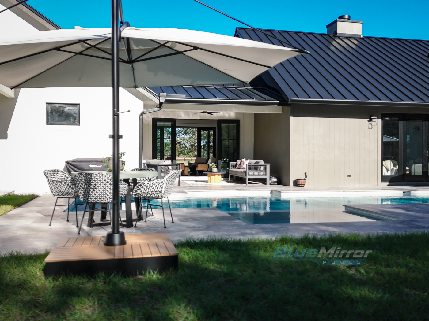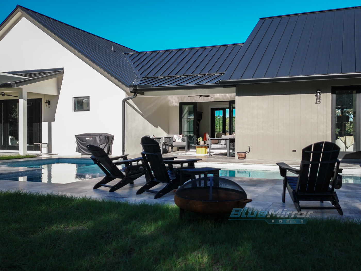 This is a backyard makeover dream come true! We did it all from an elegant pool, to cool water features and nice little putting green to relax & work on the golf game!